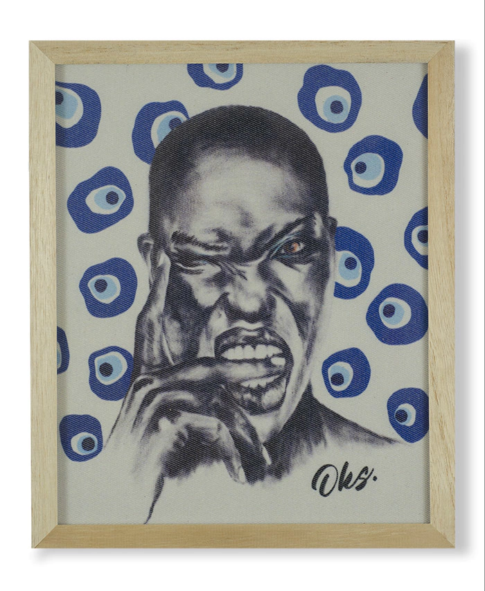 Cuadro entelado con marco de madera natural y vidrio
